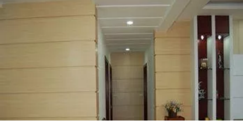 墙面整体都铺上基层板材,外面贴上装饰面板,整体效果雍容华贵,但会使房间显得拥挤。还有一种虽是用密度板等板材整面铺墙,但上面再刷上白色乳胶漆,从外表上看不出是用板材装修的,它是利用密度板切割方便、边缘整齐平直的特点,通过板材的拼接来做直线、坑槽等造型,这样处理的墙面既平整、造型细致,又避免了大量使用板材而带来的拥挤感。